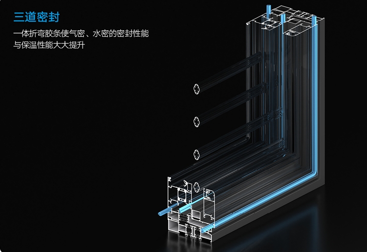 多重密封科技: 亞材門窗采用三道密封科技,諸如選用高品質密封膠條、中空折彎工藝,整體彎折,只留一道接口使門窗密封性更好解決潮濕天氣,門窗起霧等問題,構筑起堅實的防潮防線,確保室內溫馨干爽。
